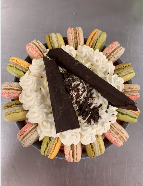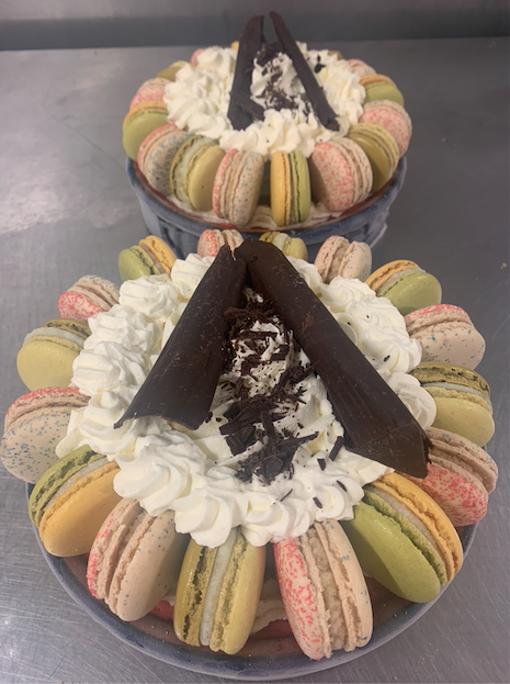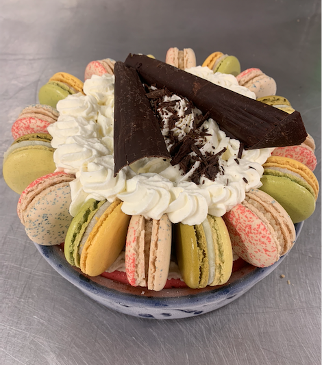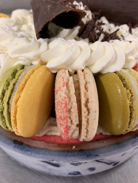 Sorbet et/ou crème glacée selon l’humeur du chef, 15 macarons Meilleur Ouvrier de France en couronne, chantilly